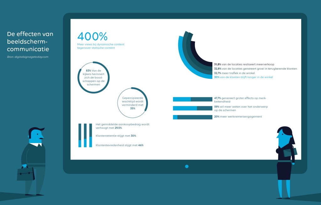 We found some interesting figures on how retailers experience the use of narrowcasting, digital signage or screen communication